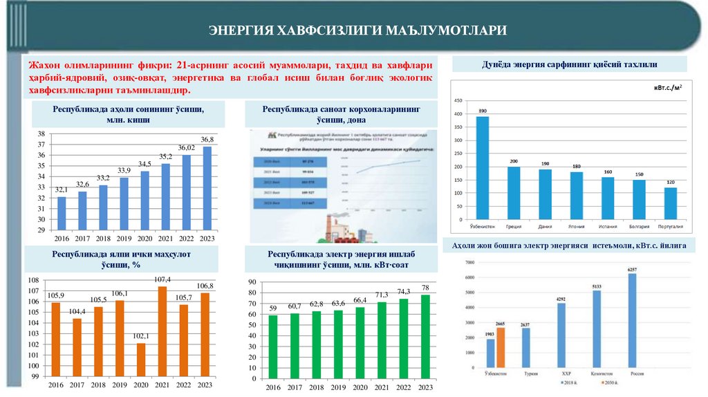 ЭНЕРГИЯ ХАВФСИЗЛИГИ МАЪЛУМОТЛАРИЖахон олимларининг фикри: 21-асрнинг асосий муаммолари, таҳдид ва хавфлари