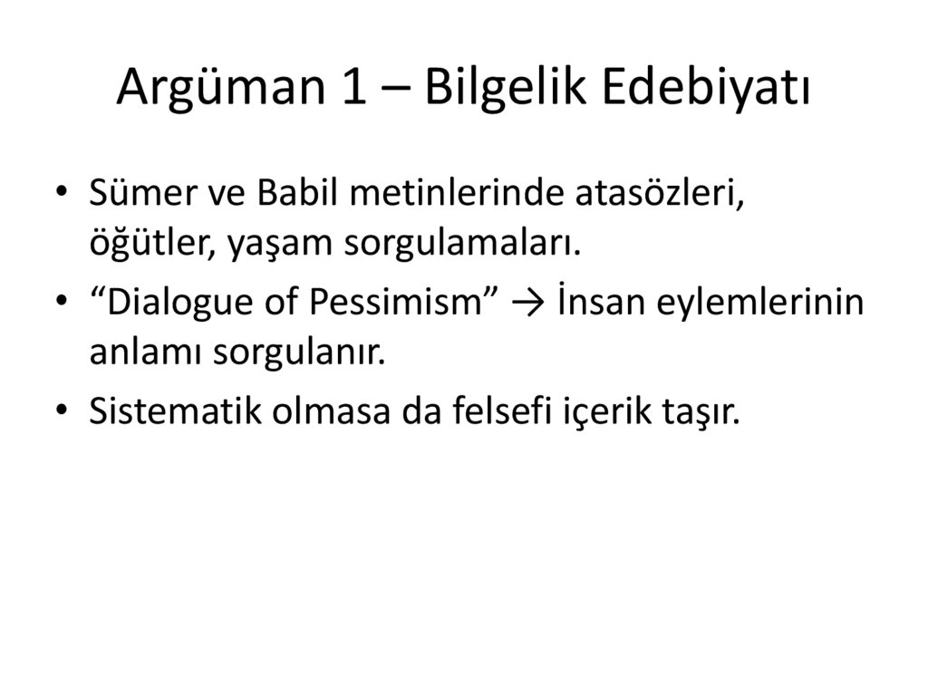 Argüman 1 – Bilgelik Edebiyatı• Sümer ve Babil metinlerinde atasözleri,