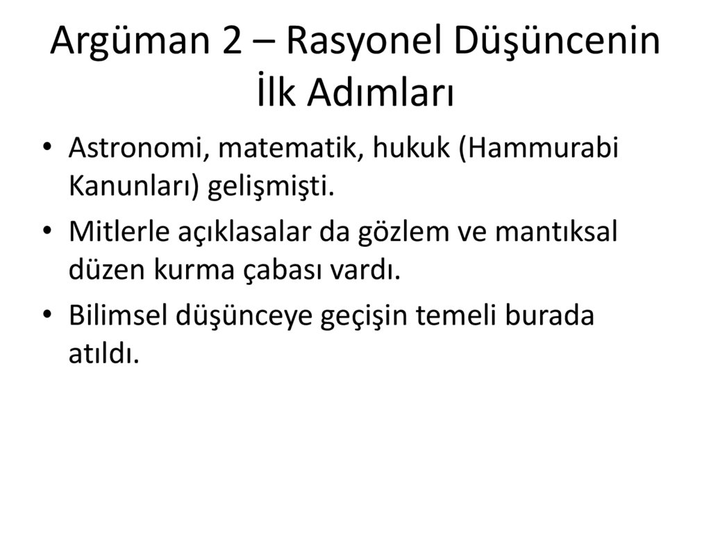 Argüman 2 – Rasyonel Düşünceninİlk Adımları
