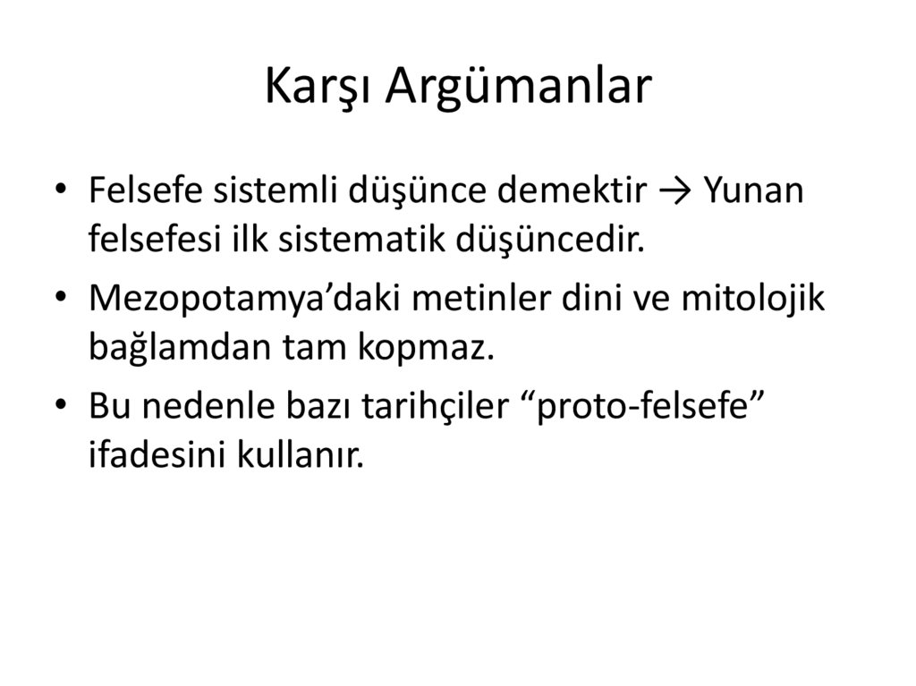 • Bu nedenle bazı tarihçiler “proto-felsefe”