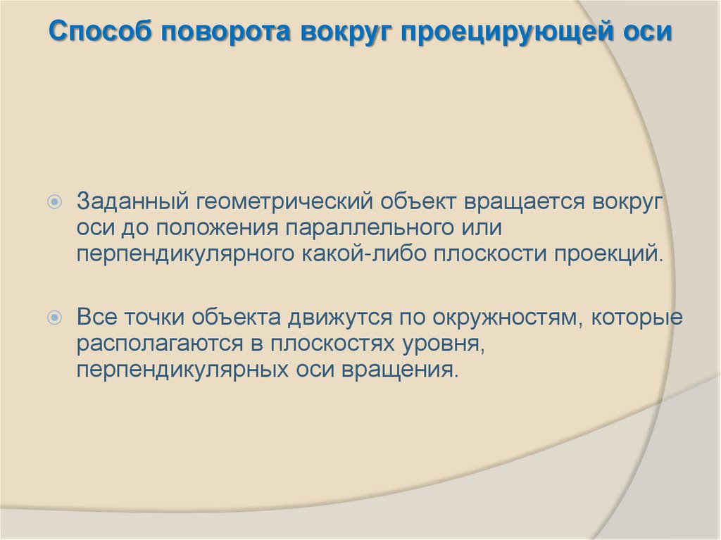 Способ поворота вокруг проецирующей осиЗаданный геометрический объект вращается вокруг