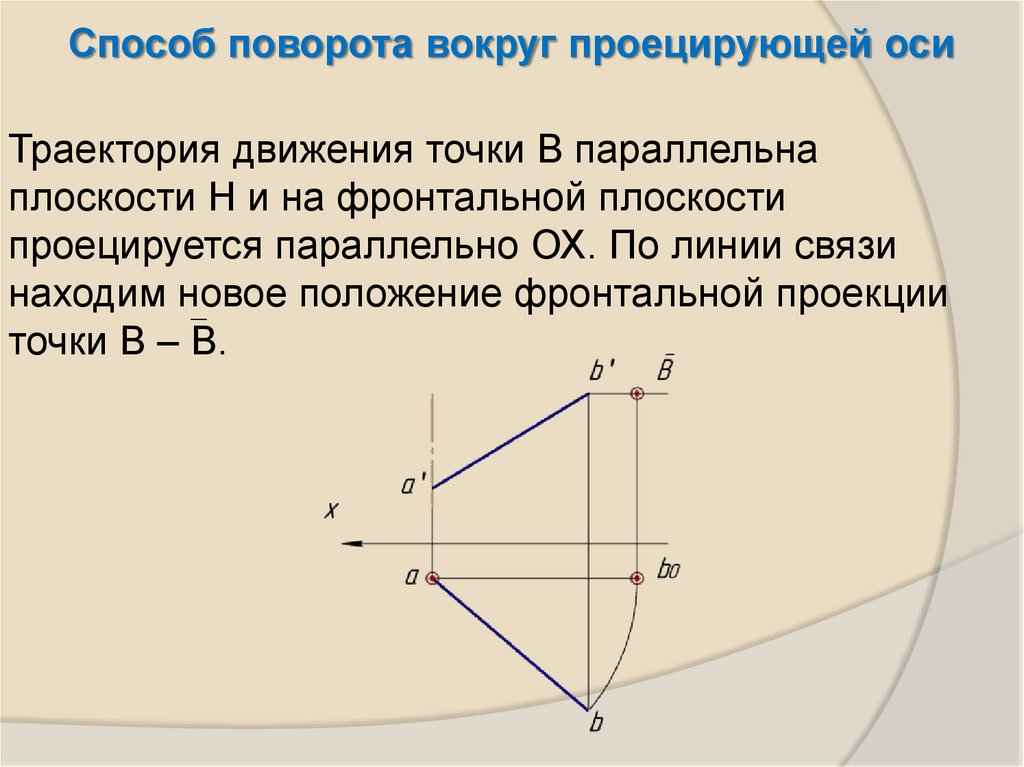 Способ поворота вокруг проецирующей осиТраектория движения точки В параллельна