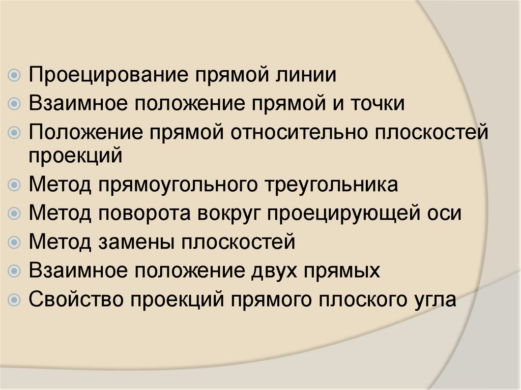 1. Параллельно – прямые уровня (горизонталь,фронталь, профильная прямая)