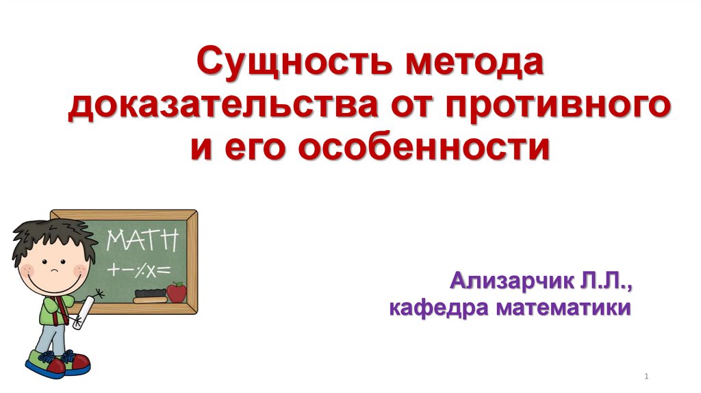 1. Сущность метода доказательства от противного и его особенности Ализарчик Л.Л., кафедра математики
