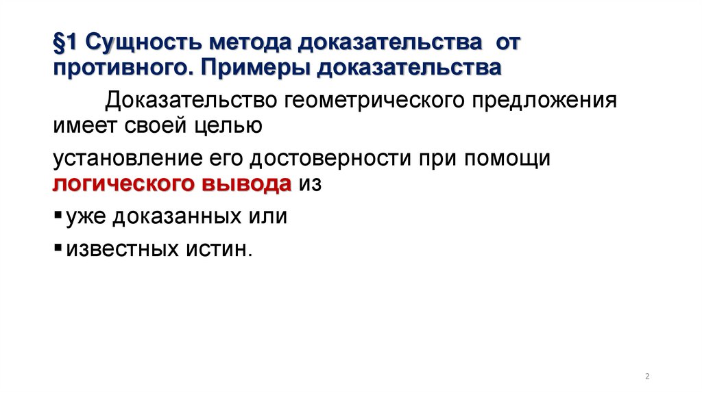 §1 Сущность метода доказательства отпротивного. Примеры доказательства