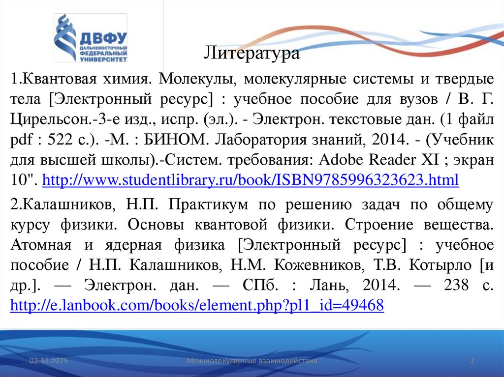Литература1.Квантовая химия. Молекулы, молекулярные системы и твердые