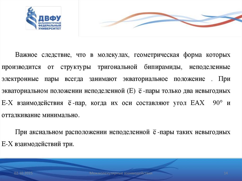 электронной пары приводит к уменьшению аксиально-экваториального