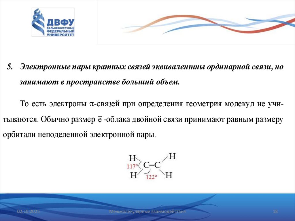 • Электронные пары испытывают не толькоэлектростатическое отталкивание, но и