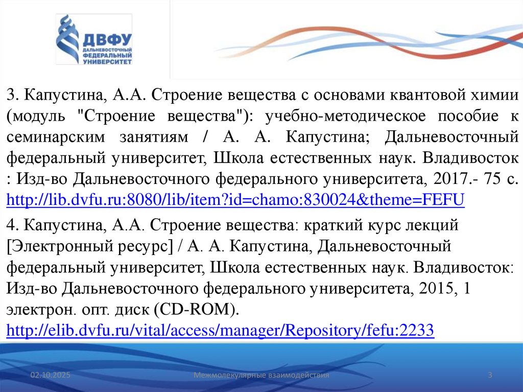 3. Капустина, А.А. Строение вещества с основами квантовой химии(модуль "Строение вещества"): учебно-методическое пособие к