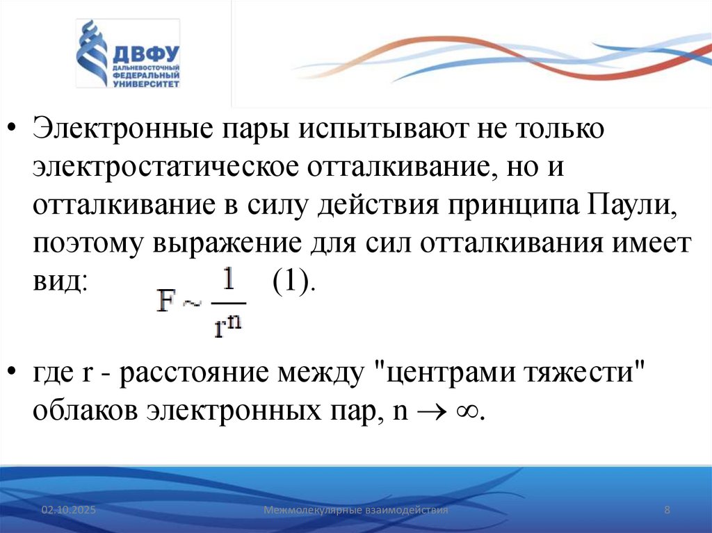 поэтому выражение для сил отталкивания имеет
