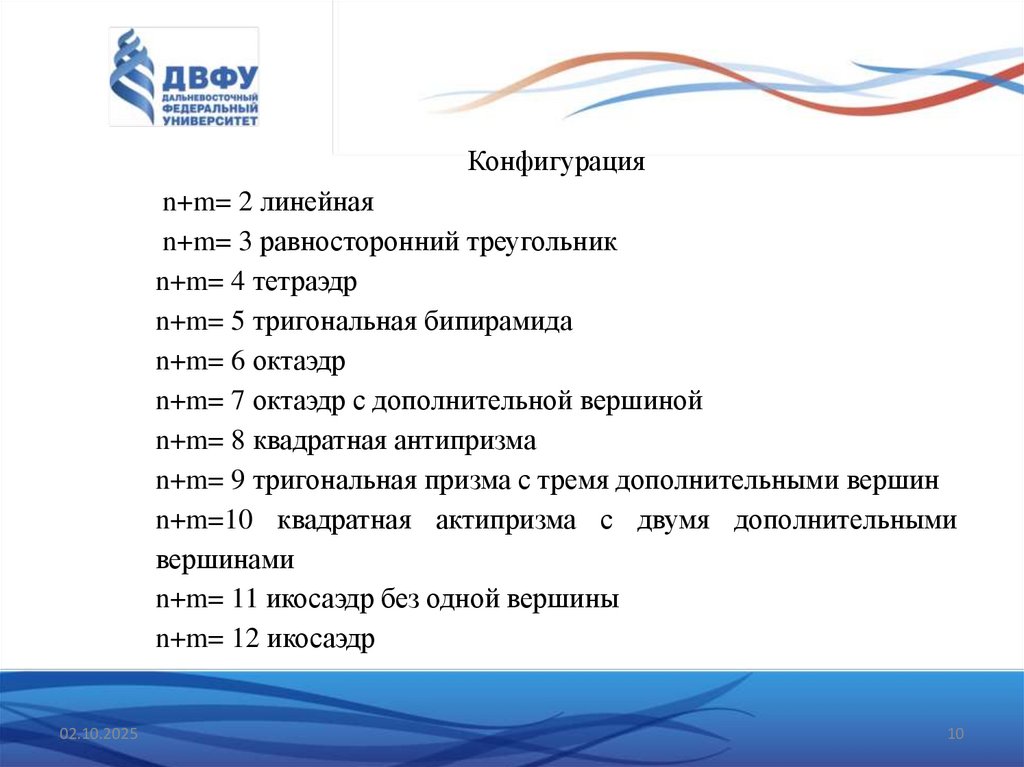 атома. Сумма (n + m) = q определяет геометрическое