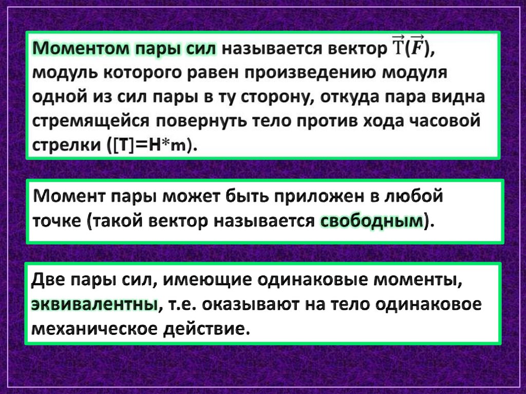 3. Парой сил называется система двух равных по модулю, параллельных и направленных в противоположные стороны сил.
