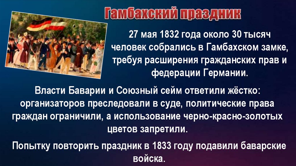 Попытку повторить праздник в 1833 году подавили баварские