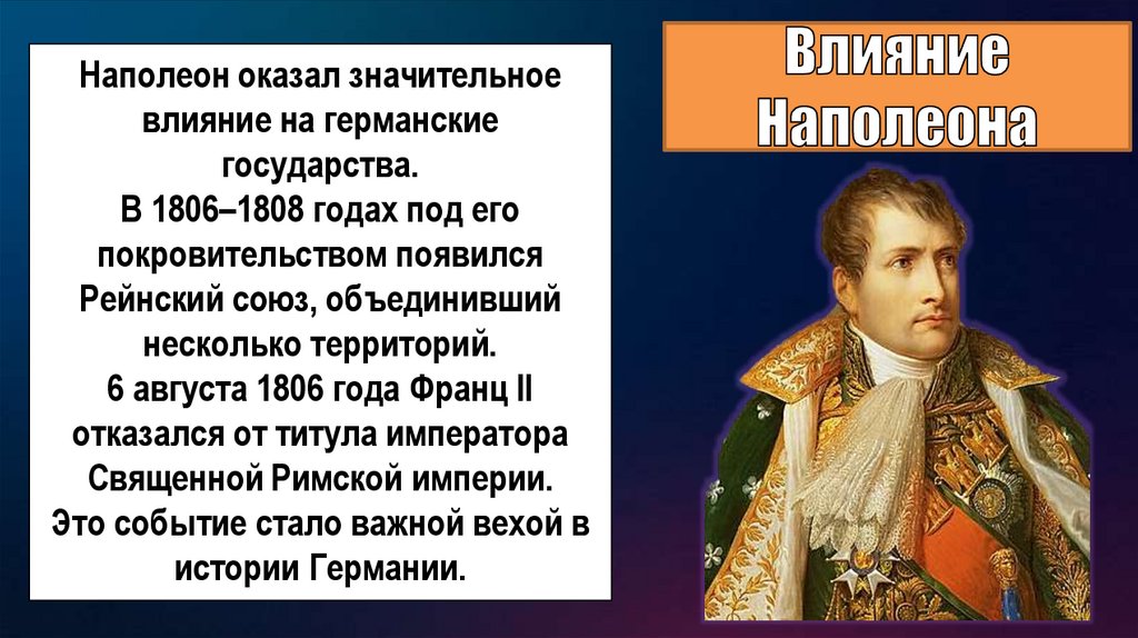 Наполеон оказал значительноевлияние на германские