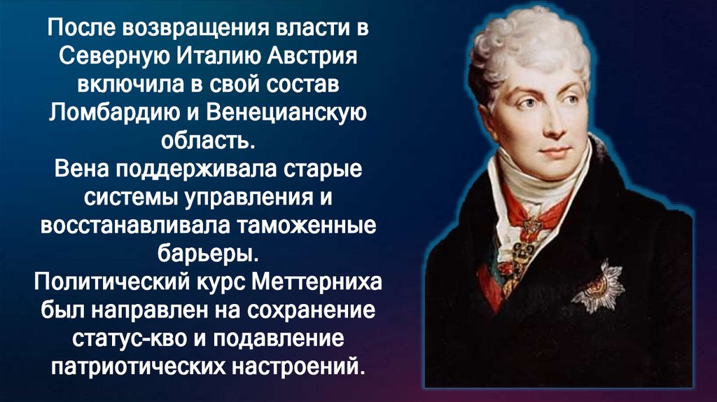 После возвращения власти вСеверную Италию Австрия