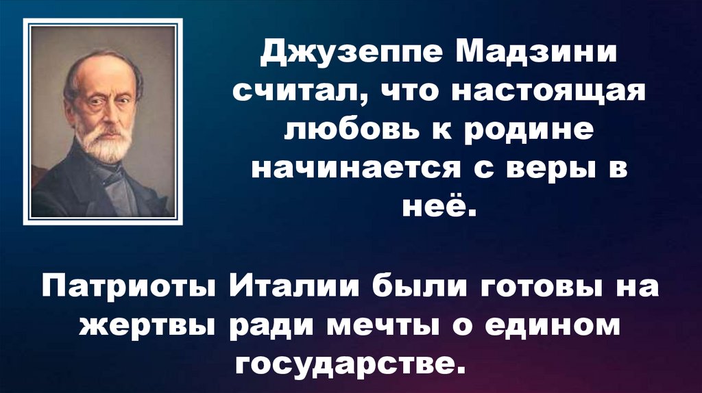Джузеппе Мадзинисчитал, что настоящая