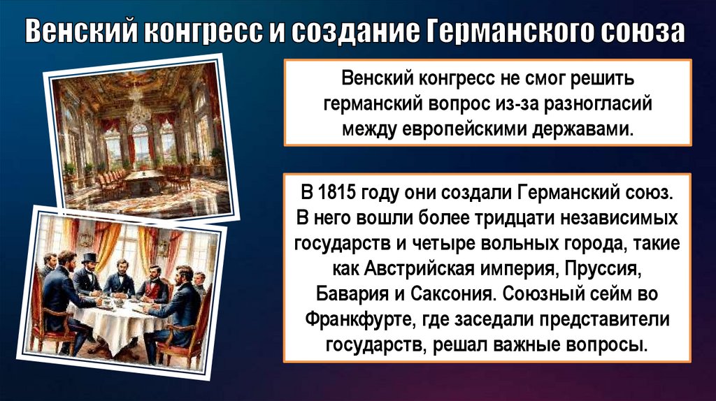 Венский конгресс не смог решитьгерманский вопрос из-за разногласий