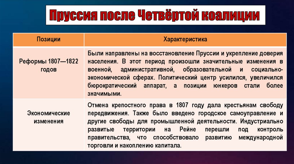 ПозицииРеформы 1807—1822