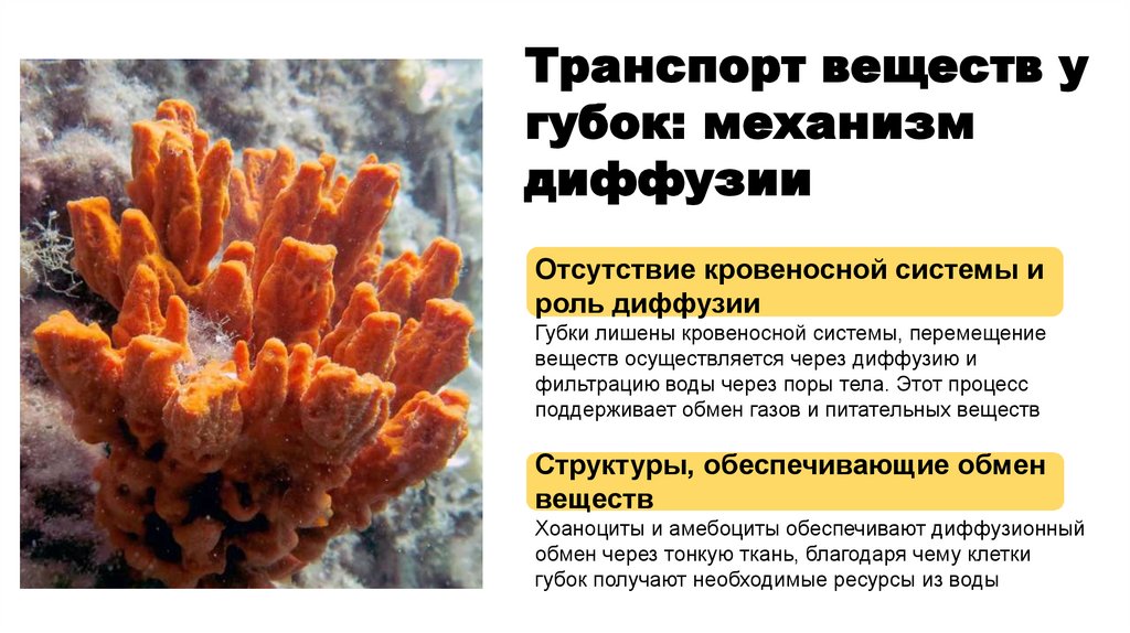 Примитивные механизмы диффузии обеспечивают транспорт веществ у