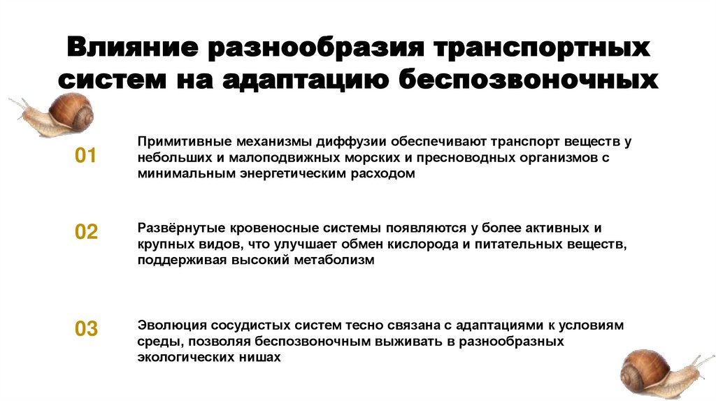 Влияние разнообразия транспортныхсистем на адаптацию беспозвоночных