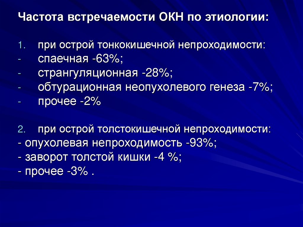 -Частота заболеваний острой кишечнойнепроходимостью от 4 до 20 случаев на 100000