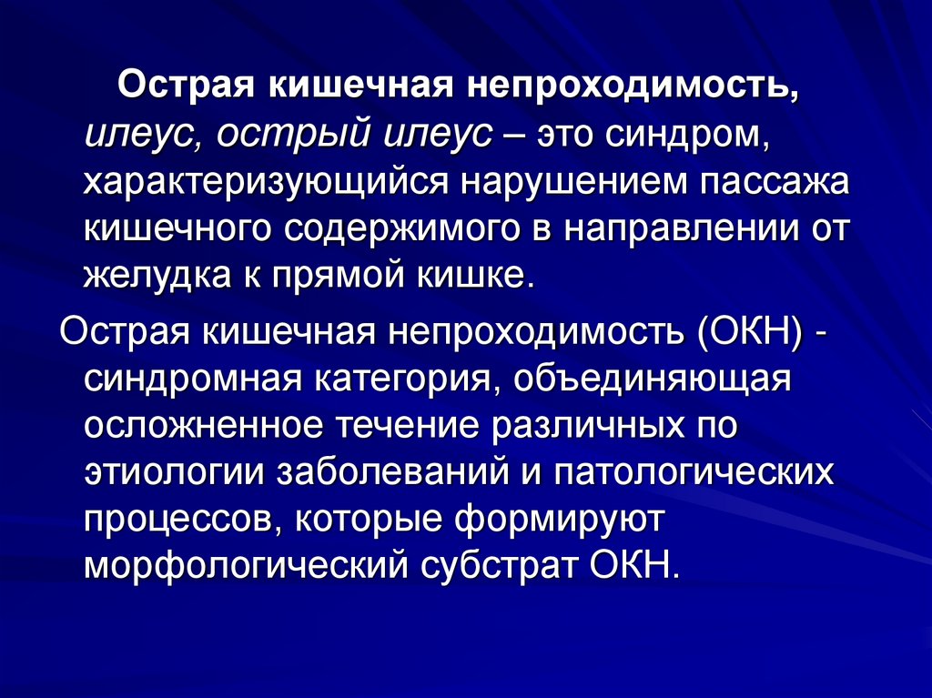 Острая кишечная непроходимость (ОКН) синдромная категория, объединяющая