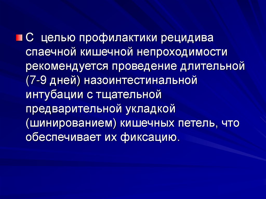 С целью профилактики рецидиваспаечной кишечной непроходимости