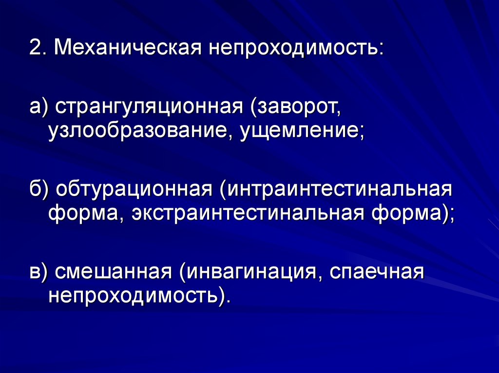 2. Механическая непроходимость:а) странгуляционная (заворот,
