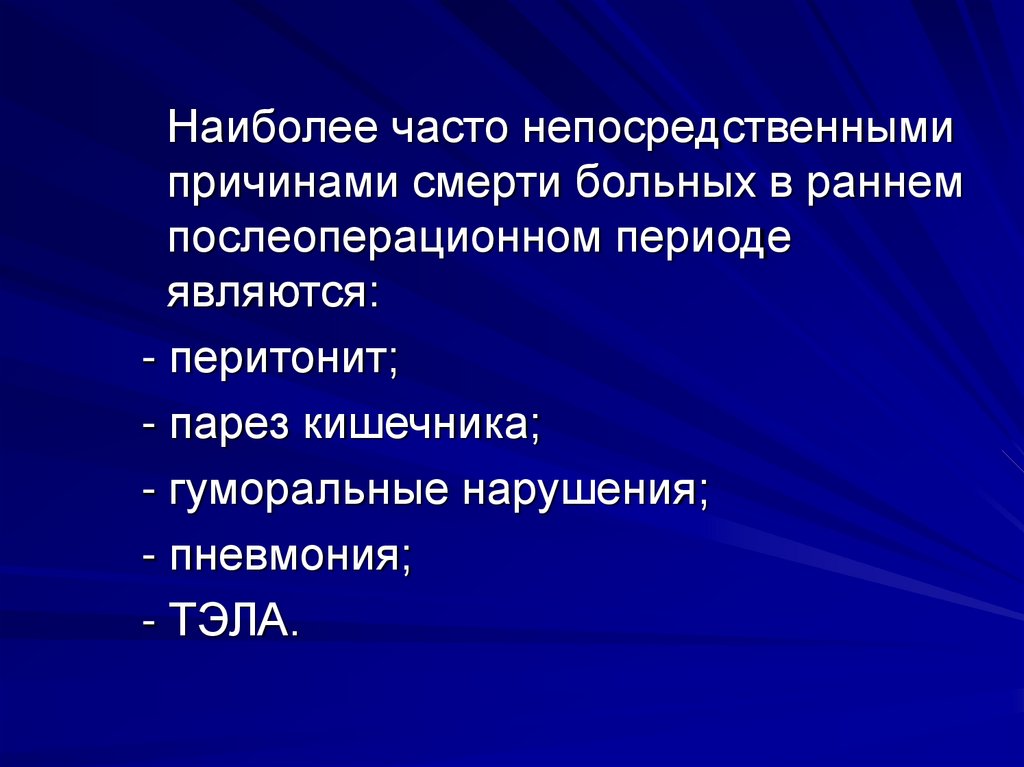 Наиболее часто непосредственнымипричинами смерти больных в раннем