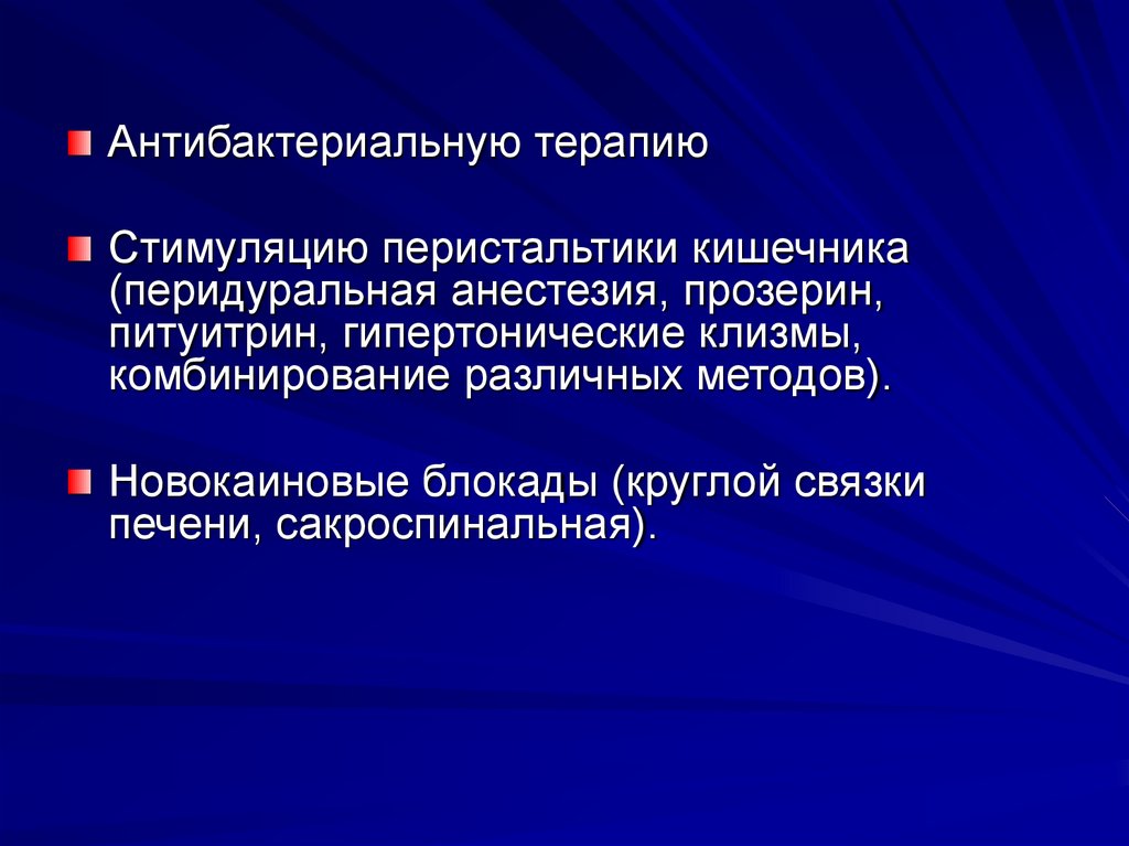 Антибактериальную терапиюСтимуляцию перистальтики кишечника