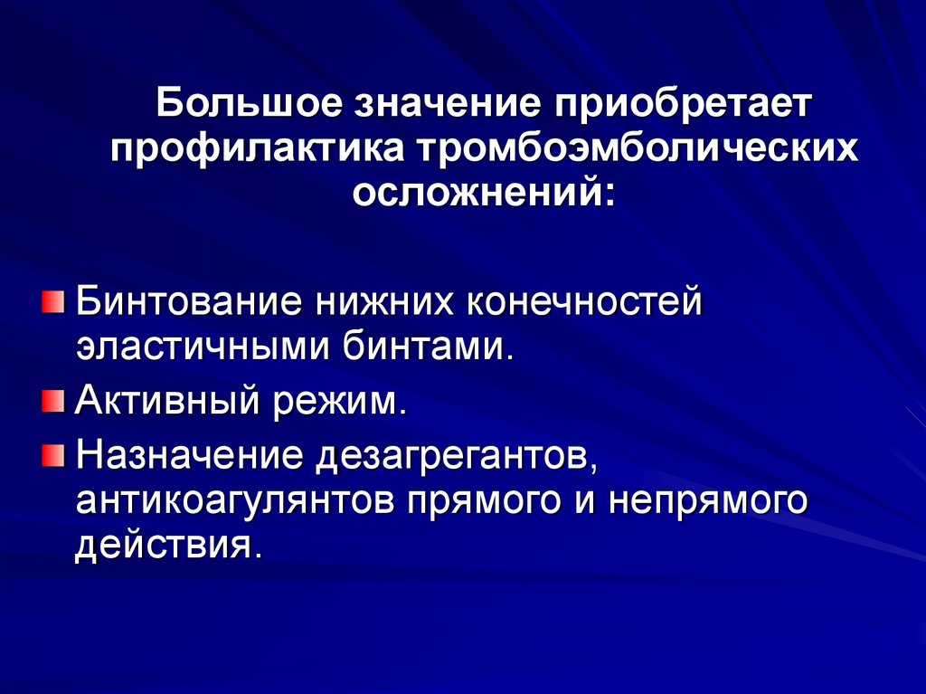 Большое значение приобретаетпрофилактика тромбоэмболических