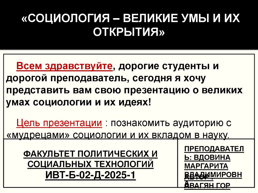 «СОЦИОЛОГИЯ – ВЕЛИКИЕ УМЫ И ИХОТКРЫТИЯ»