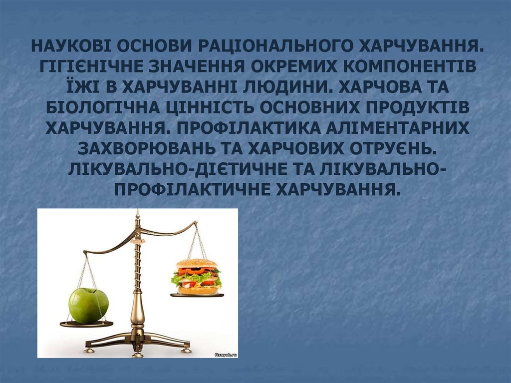 1. НАУКОВІ ОСНОВИ РАЦIОHАЛЬHОГО ХАРЧУВАHHЯ. ГІГІЄНІЧНЕ ЗНАЧЕННЯ ОКРЕМИХ КОМПОНЕНТІВ ЇЖІ В ХАРЧУВАННІ ЛЮДИНИ. ХАРЧОВА ТА БІОЛОГІЧНА
