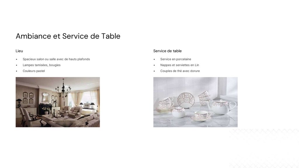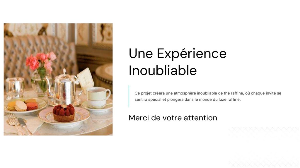 Ce projet créera une atmosphère inoubliable de thé raffiné, où chaque invité se
