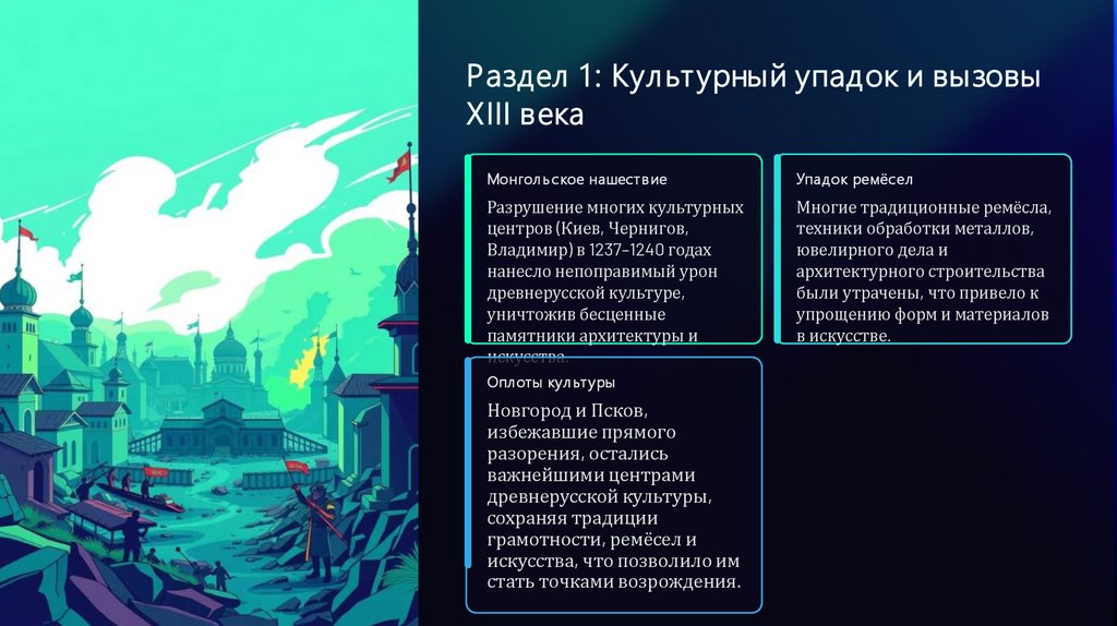Раздел 1 : Кул ьт урный упадок и вызовыXIII века