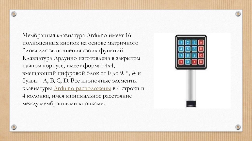 Мембранная клавиатура Arduino имеет 16полноценных кнопок на основе матричного