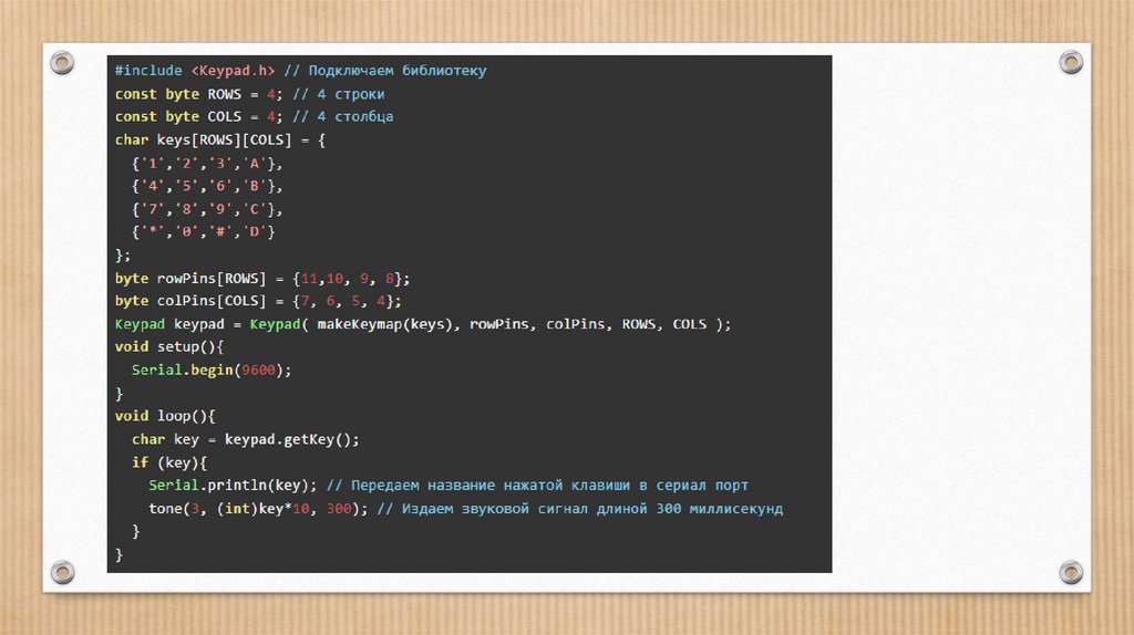 Задание 1: Вывод нажатой клавиши в монитор порта Arduino1.Соберите схему с Arduino и мембранной клавиатурой 4x4 на Tinkercad.