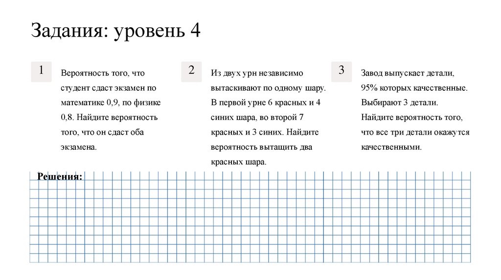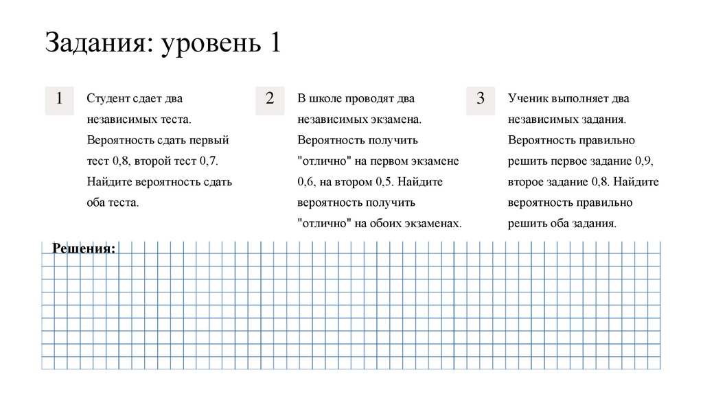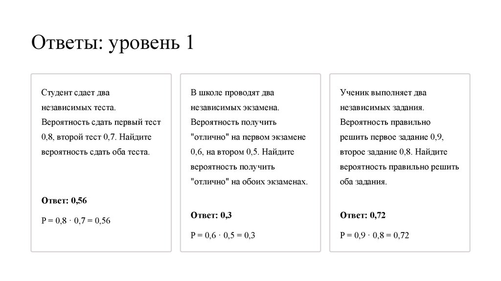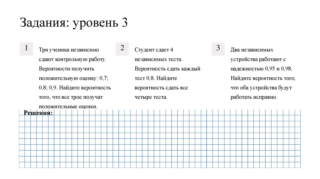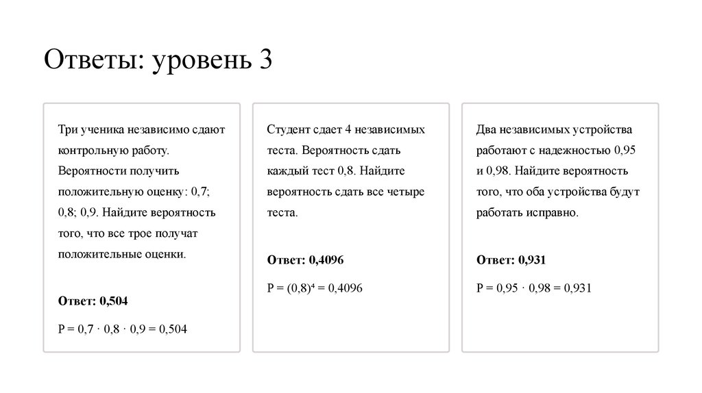 Ответы: уровень 3Три ученика независимо сдают