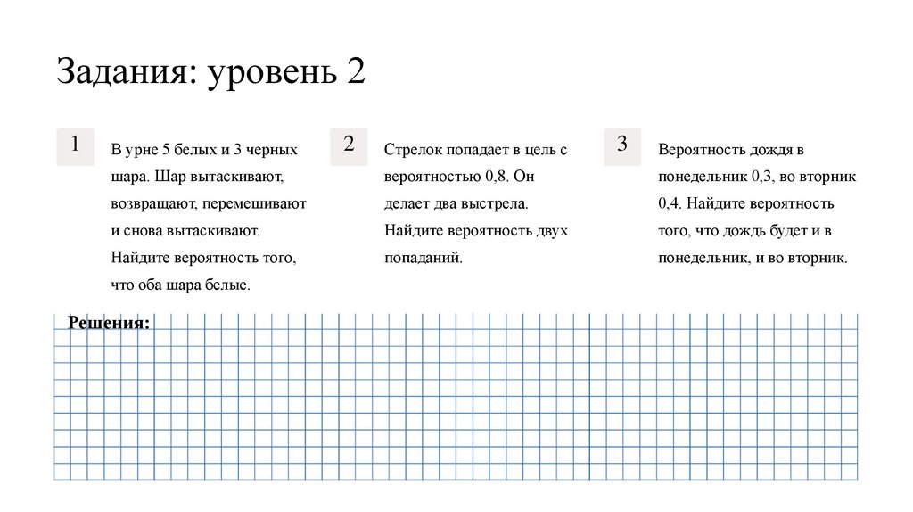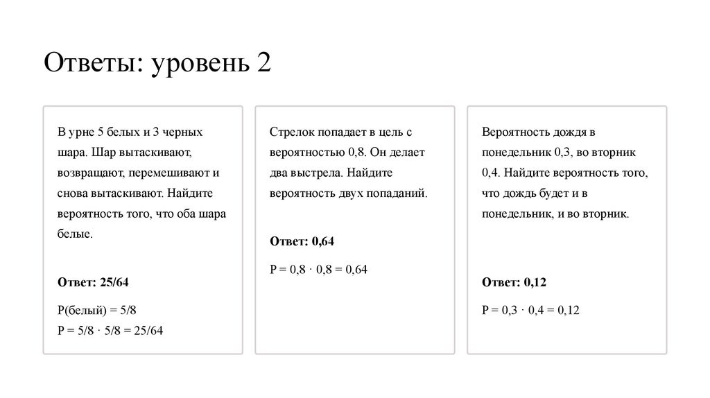 Ответы: уровень 2В урне 5 белых и 3 черных
