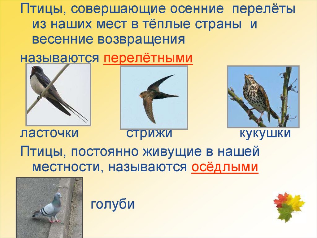 Птицы, совершающие осенние перелётыиз наших мест в тёплые страны и
