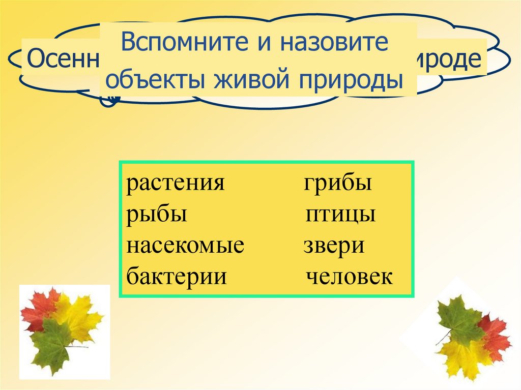 Вспомните и назовитеОсенние изменения в живой природе
