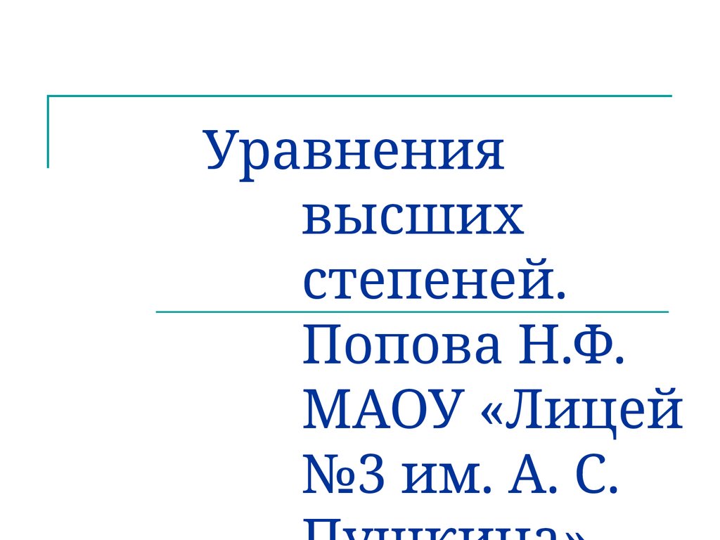 1. Уравнения высших степеней. Попова Н.Ф. МАОУ «Лицей №3 им. А. С. Пушкина»