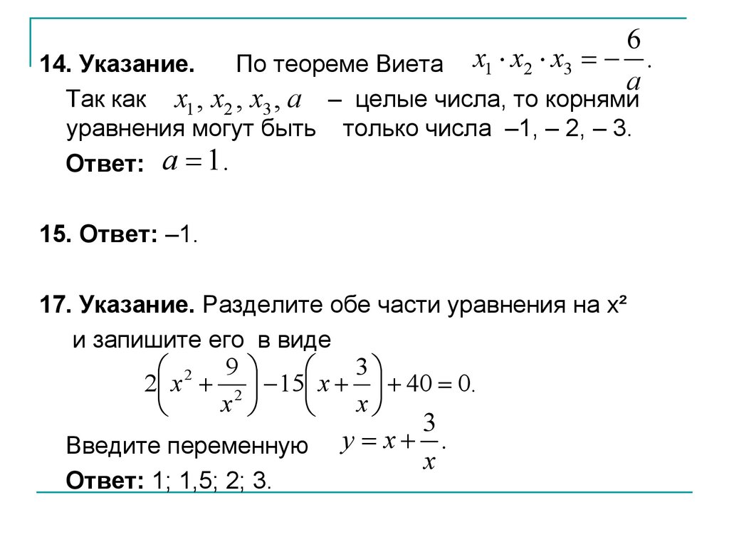 Так как x1 , x2 , x3 , a – целые числа, то корнями