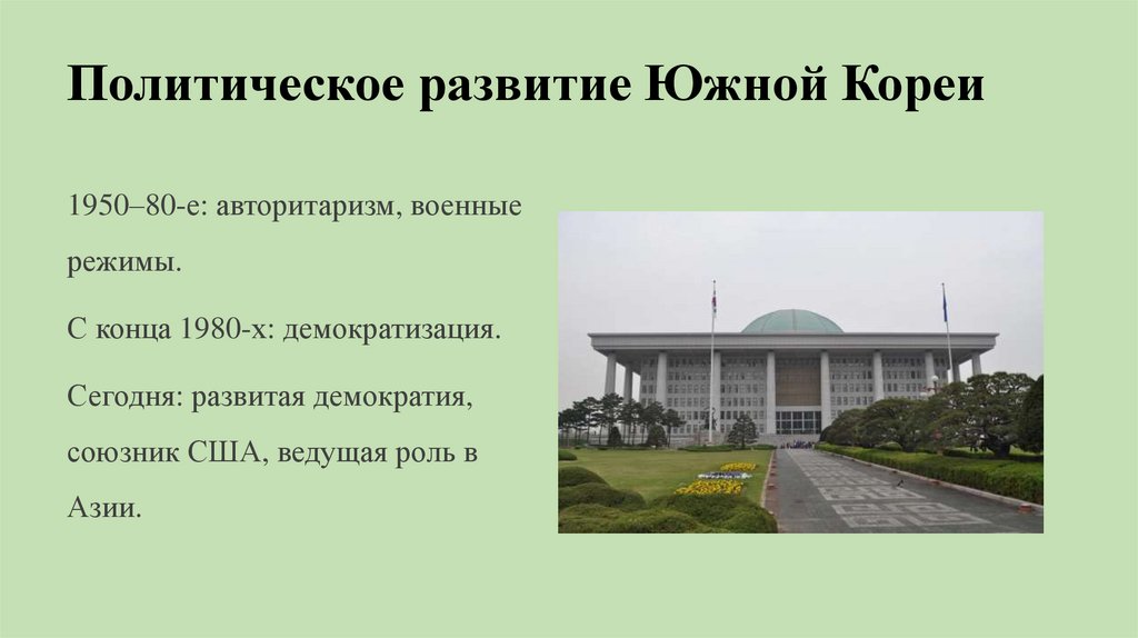 Политическое и экономическое развитиеКореи во второй половине 20в и в наши дни