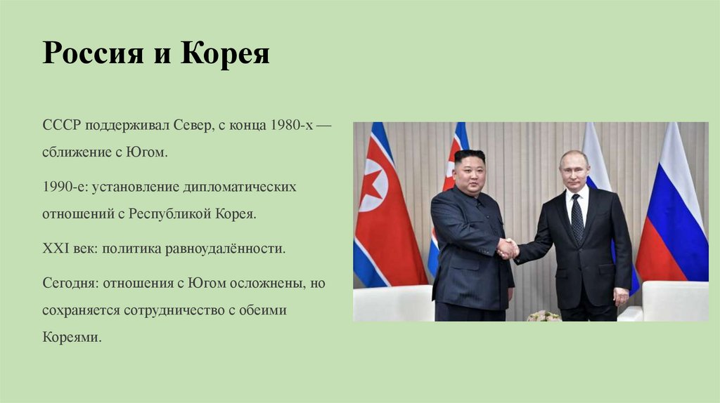 Россия и КореяСССР поддерживал Север, с конца 1980-х —