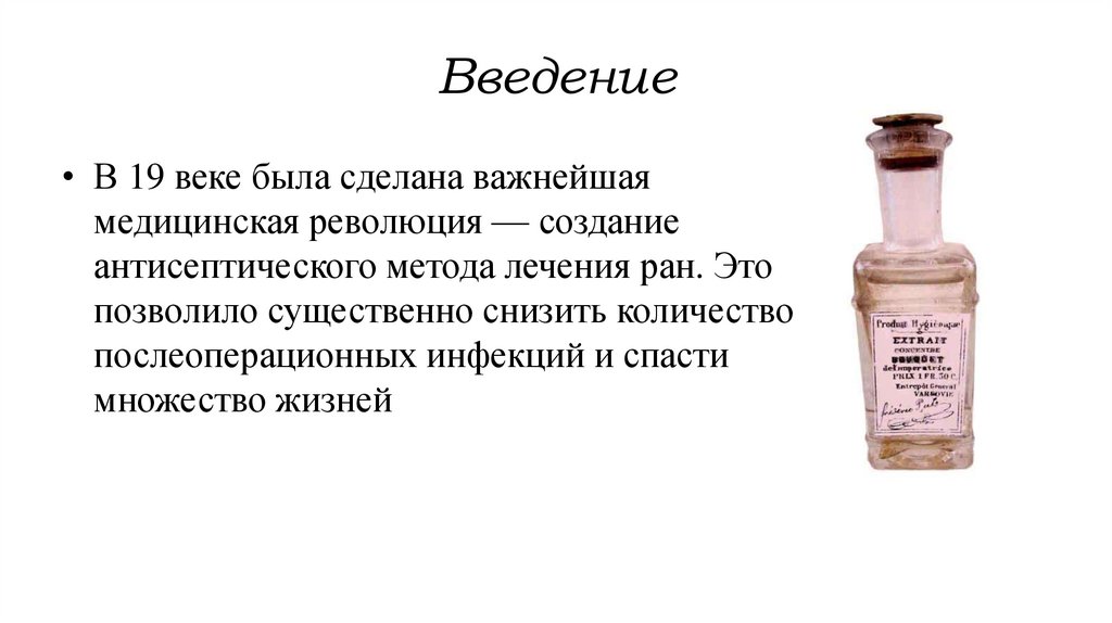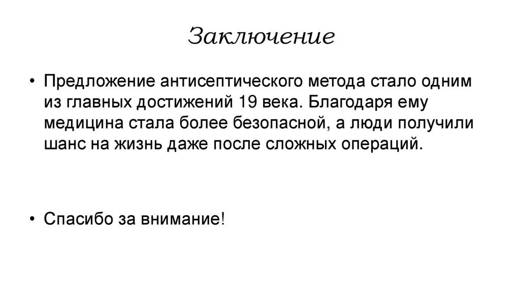 Заключение• Предложение антисептического метода стало одним