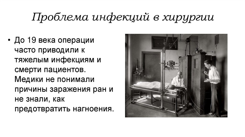 Проблема инфекций в хирургии• До 19 века операции