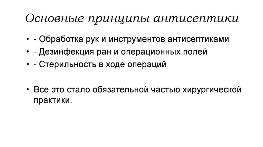 Основные принципы антисептики• - Обработка рук и инструментов антисептиками