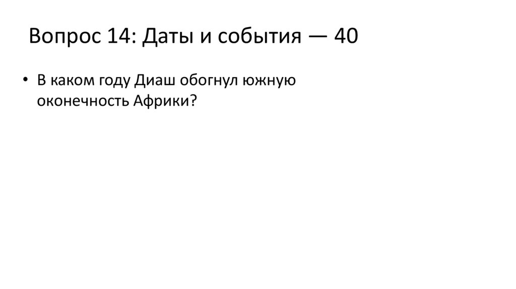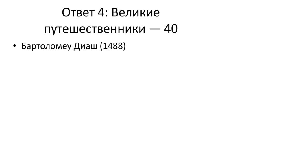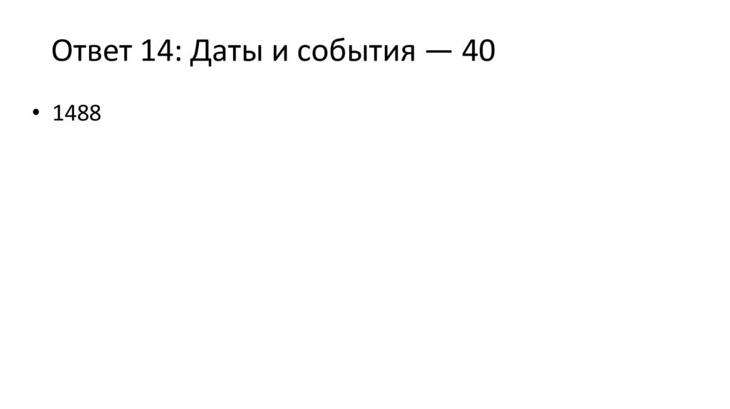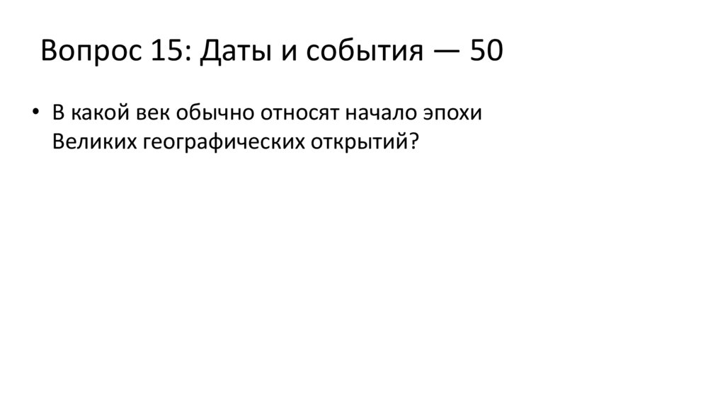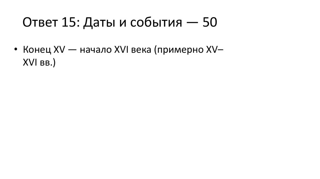 Ответ 15: Даты и события — 50• Конец XV — начало XVI века (примерно XV–