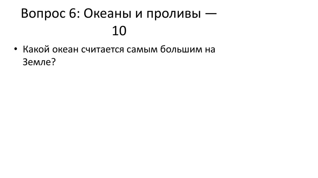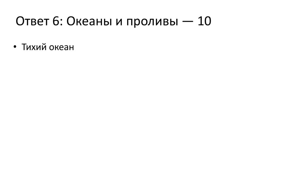 Ответ 6: Океаны и проливы — 10• Тихий океан